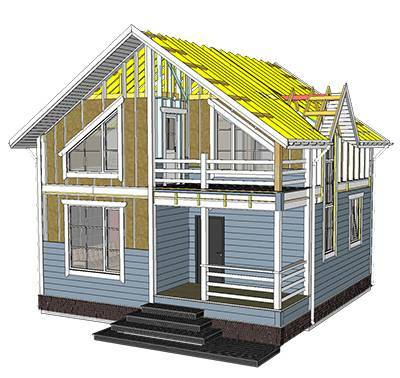 На этой картинке представлены два варианта отделки дома. Первый вариант это имитация бруса или вагонка на стенах, шпунтованная доска на полах. Второй вариант это двойной гипсокартон на стенах, OSB плита на полах. Утепление стен 150 мм, полов 150 мм, потолка 200/250 мм. Контр обрешетка стен брусок 20х40. Контр обрешетка фасада брусок 40х30. Конечная толщина стены 224 см.